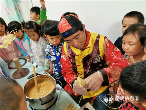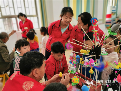 昆明信息港讯 记者甘凌菲 通讯员赵艳 剪纸、捏面人、滇式风筝、吹糖人、糖画、草编......6月1日上午,在昆明市盘龙区茨坝幼儿园内来了一群特殊的人,为孩子们现场展示技艺和绝活,大家一起过了个多姿多彩的儿童节。