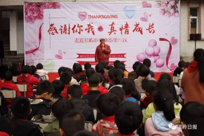 俞明德参加由工作室和市青少年宫在新河镇长屿小学塘岙里校区联合举行的感恩活动。