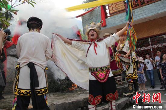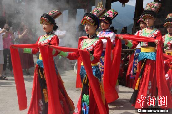 四川北川羌族民众载歌载舞欢庆瓦尔俄足节