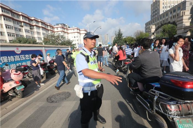 上午7时,各考点外已经挤满考生和送考家长,辖区执勤交警及消防大队武警官兵们也早早的守护在考场外为考生保驾护航。