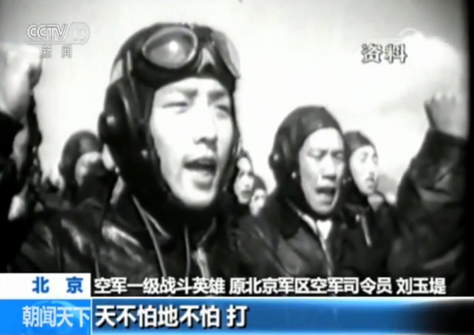 空军一级战斗英雄 原北京军区空军司令员 刘玉堤:像这喷气式飞机,我们只飞了二三十小时,我们对手是参加过二次世界大战的这个飞行员,都是上千小时的,但是我们为什么敢呢?也可以说新生的牛犊子不怕虎,天不怕地不怕,打。