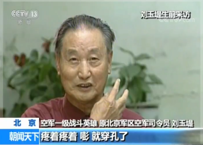 空军一级战斗英雄 原北京军区空军司令员 刘玉堤:瞄准也来不及了,就对着它屁股这个地方就开炮了,从后边一直打到前边,就往下打得轰家伙着火了,我也来不及躲开它,噌家伙从人家火苗子里边过去了。