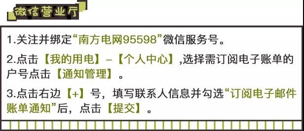 需要提醒的是,如未定制短信服务或您的联络手机有变更,您可通过“南方电网95598”微信公众号、网上营业厅、供电营业厅或致电95598定制短信服务或变更联络手机,免费享受用电短信提醒服务。