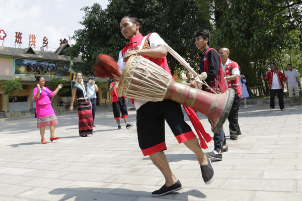 班洪乡佤族百姓打歌。澎湃新闻记者 孙鹏程 图