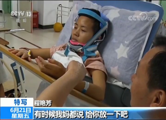 脊椎骨折,脊髓受损的程艳芳,从昏迷中醒来后就一直躺在床上。刚知道自己的病情时,她也消沉过,不过,这个坚强的姑娘很快就告诉自己,要接受现实向前看,努力向好的方向发展。
