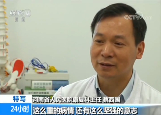 河南省人民医院康复科主任 蔡西国:这么重的伤情,还有这么坚强的意志,这点让我们很感动。