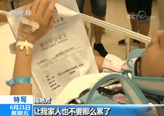 在治疗过程中,程艳芳最惦记的就是自己的毕业论文。按照学校计划,她所在的专业在5月24号进行论文答辩,看着毕业的日期越来越近,程艳芳心里非常着急。