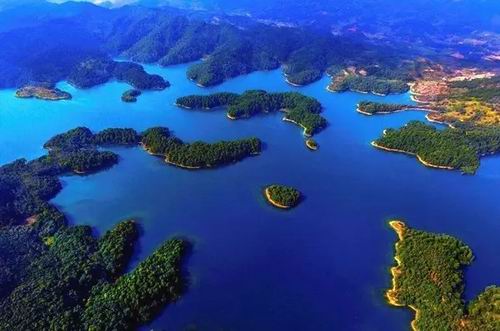极目远眺,远山如黛,湖光泛色,碧水连天,山峦青翠,山林野趣,浑然天成,犹如海山环抱的人间仙境!