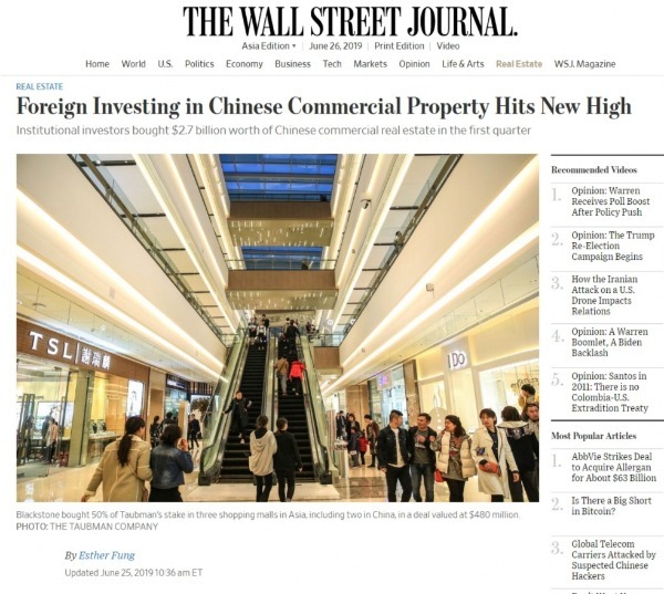 据美国《华尔街日报》6月25日报道,地产咨询公司Real Capital Analytics的数据显示,今年第一季度,美国、瑞士、巴林和新加坡等国的机构投资者买入了价值27亿美元的中国商业地产。