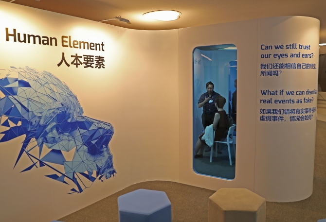 世界经济论坛第十三届新领军者年会(夏季达沃斯论坛)7月1日至3日在辽宁大连举行。会场上手术机器人、5G智能沙箱、生物识别技术等科技感十足的展示项目吸引了众多与会者参观体验。 (新华社记者 杨青 摄影报道)