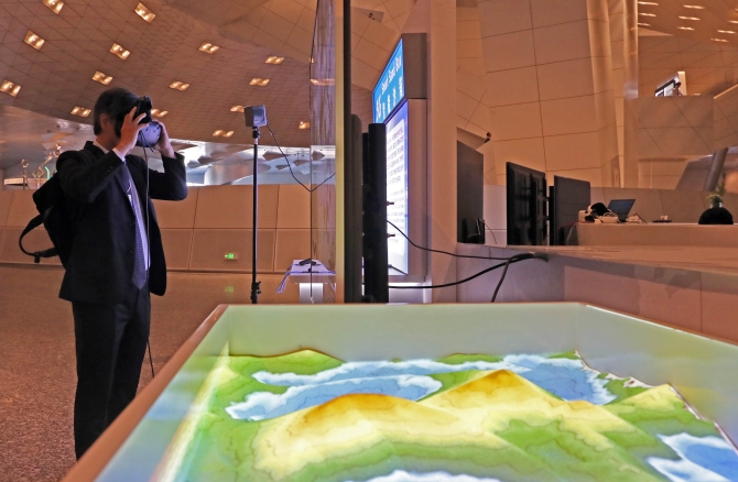 7月1日,在大连国际会议中心,参会嘉宾体验5G智能沙箱。