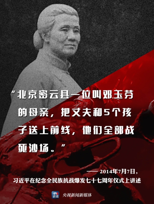 连续多年在多个场合,习近平总书记强调指出:“伟大的抗战精神,永远是激励中国人民克服一切艰难险阻、为实现中华民族伟大复兴而奋斗的强大精神动力”,提出“在新的历史条件下,全党全国各族人民要大力弘扬伟大抗战精神。”