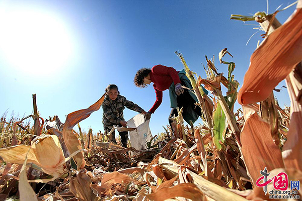 王平到地里查看玉米长势情况。中国网记者 伦晓璇 摄