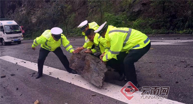 7月10日,因连续强降雨,云南省大理白族自治州漾濞县境内320国道K3437+400米(西洱河一级电站附近)道路发生塌方落石,导致交通暂时中断。险情发生后,漾濞县公安局交警大队立即启动应急预案,派出警力上路加强交通管理工作,及时疏导指挥车辆绕行,开展道路隐患清理排查,全力预防道路交通事故。