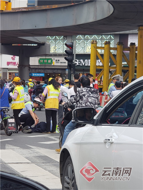 据目击市民向云南网提供的视频显示,在天桥下方,一名身穿制服的协警疑受伤躺在路上,身旁还站着其他交警和协管员。由于正值下班高峰期,街上人车流不断从身边驶过。目击市民杨女士表示,当时她正从旁边经过,听到一阵刺耳的引擎轰鸣声后,便看到一辆摩托车疾驰而过。“飞速的那种,看见行人也不减速,直接就冲过去,一直撞到一张私家车才停下来。”惊险的一幕让杨女士心有余悸。
