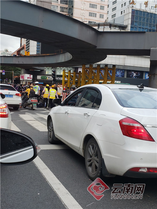 昆明小花园附近一辆摩托疾驰撞翻两人