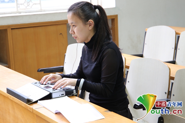黄莺对于双目失明这件事接受程度比较高,但学习中也会遇到各种各样的困难。小学时,由于年龄小、力气也小,然而盲文的字全部都是需要用劲砸出来,黄莺当时感觉有些力不从心。后来,盲文老师专门给她发明了一种方法,用头去顶着手扎盲文,“因为需要用额头和鼻子中间的位置去顶着写,时间长了还会把那个地方磨出茧子,虽然有些疼痛,但忍一忍就过去了。”