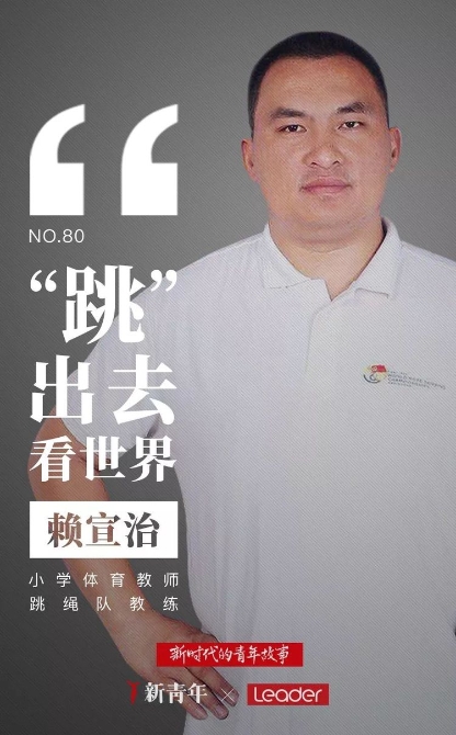 大家好,我是新青年赖宣治,是一名小学体育老师。我还有一个特殊的身份,那就是世界跳绳冠军队——七星小学跳绳队的教练。