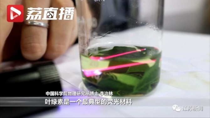 “叶绿素本身绿色的,用酒精泡一泡树叶,出来的液体就是绿色,用验钞笔一照,像荧光棒一样那样发光。有一些传闻就不一定那么靠谱了,就说生活中某些东西有荧光有害什么。叶绿素是最典型的荧光材料,你天天吃菜,你会担心叶绿素有毒吗?”“大师兄”李治林讲得很清楚了。
