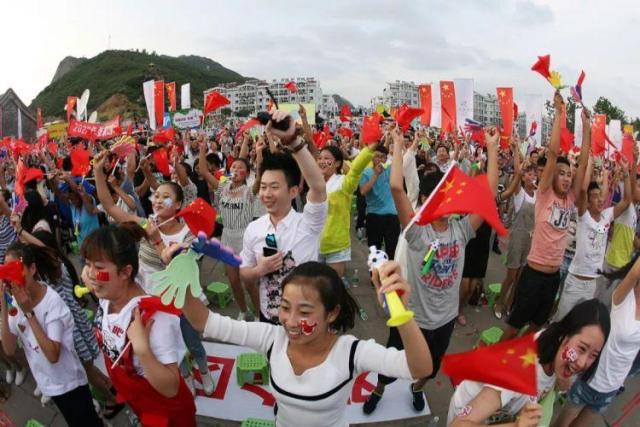 ↑2015年7月31日,河北省张家口市市民在大境门广场庆祝北京携手张家口获得2022年冬奥会举办权。新华社记者武殿森/摄
