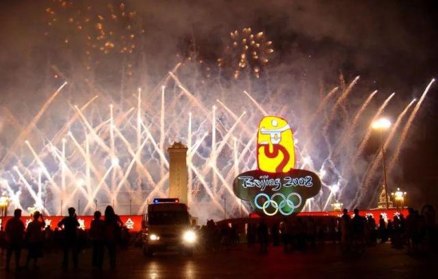 ↑2008年8月8日晚,观众在天安门广场观赏焰火。当晚,第29届北京奥运会开幕式在国家体育场隆重举行。新华社记者 吴长青/摄
