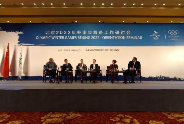 ↑2015年11月3日,北京2022年冬奥会筹备工作研讨会在北京召开。在为期两天的议程里,来自国家体育总局等国家有关部门,以及北京市、河北省的相关人员与国际奥委会及国际残奥委会专家就冬奥会的筹备工作进行了深入交流。新华社记者 夏一方/摄