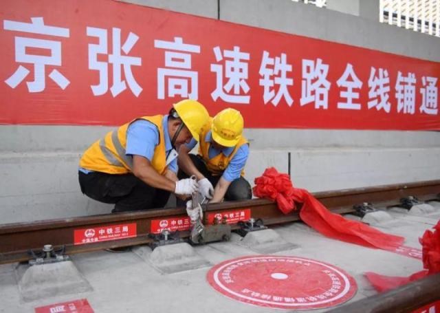 ↑2019年6月12日上午,工作人员在京张高铁清华园隧道对轨道铺通接轨点进行施工。精调之后,轨距误差在正负1毫米之内。被誉为中国铁路发展“集大成者”、智能高铁示范工程的京张高铁实现全线轨道贯通。新华社记者 张晨霖/摄