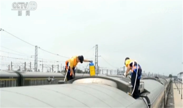 央视网消息:现在正值全国铁路暑运时期。每年暑运期间也是内蒙古的旅游旺季。旅客列车处于满负荷运行状态。为了让旅客能在列车上享受清凉,必须要确保列车空调正常运行。在呼和浩特铁路局包头车辆段就有这样一些空调维修工。他们每天要头顶烈日,在列车顶上检修列车空调。