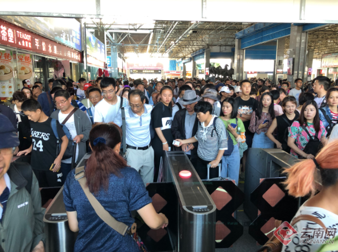 2日早,记者到达昆明站候车区,发现侯车区里人头攒动,或坐或站挤满了人。记者通过询问得知,不少乘客都是趁暑期成群结队相约来云南旅游的游客。
