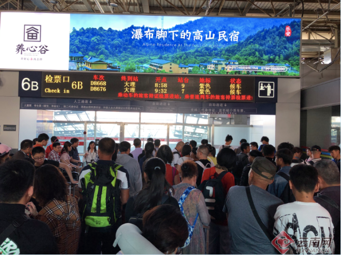 今年昆明到大理丽江游客激增导致车票紧张,还请往来的旅客提前做好出行和购票计划,以保障愉快的旅行体验。记者张彤 摄影报道