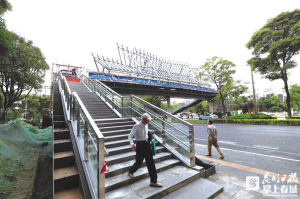 “现在天桥的外包装和楼梯、走道等施工都已完成,电梯的施工还需要几日,我们预计本月15日到20日完成电梯施工,并由相关单位进行试运行和验收。验收通过就马上投入使用,应该不会超过本月底。”施工方工作人员表示,为方便行人晚上通行,电梯、走道上的灯带将在这几天安装完成,并不影响市民通行。
