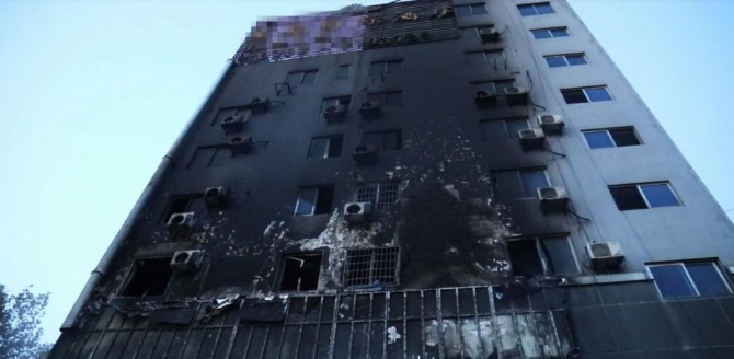 外墙被烧得漆黑