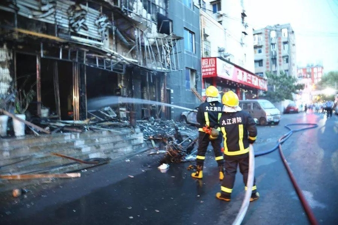 江西九江火车站附近一家餐馆着火