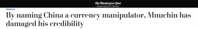 华盛顿邮报:宣称中国是“汇率操纵国”,姆努钦损害了自己的信誉