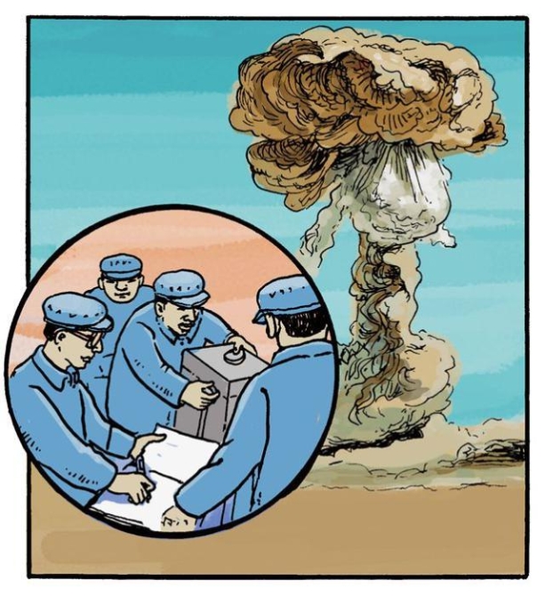1、 1964年10月16日15时,罗布泊一声巨响,蘑菇云腾空而起。作为爆炸力学方面的技术骨干,时年26岁的林俊德参加了“争气弹”核试爆炸任务。他发明的“林氏”压力自记仪,在我国第一颗核爆实验中首战立功。自此,作为功勋装备,它应用于各种高尖端武器试验之中,出现在试验场的各个角落。
