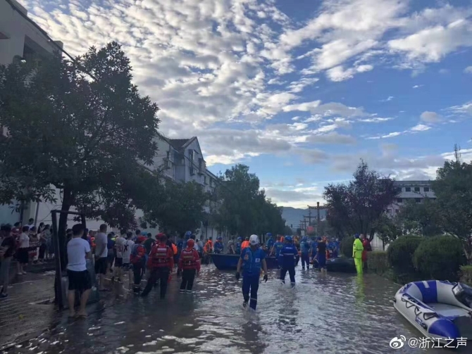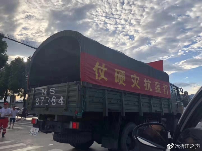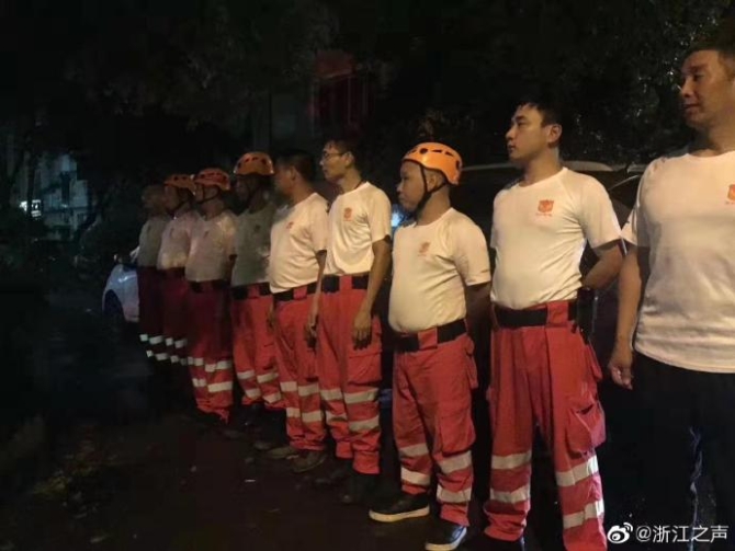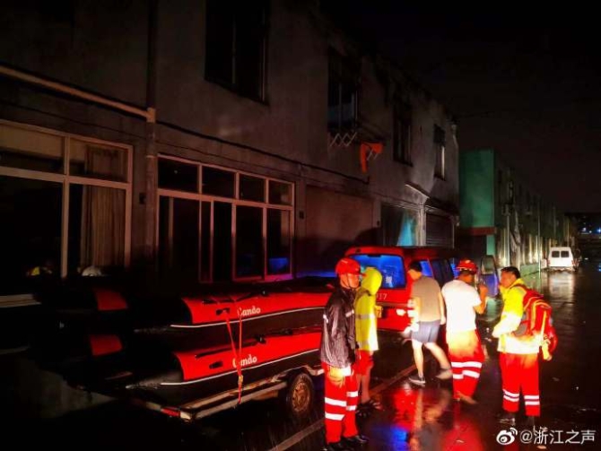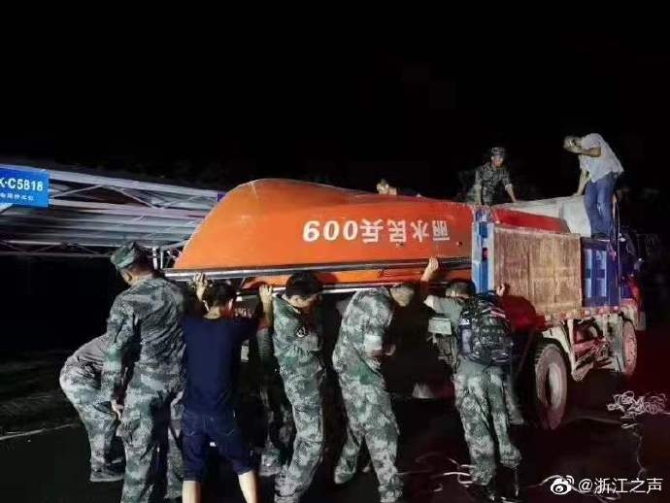 19点30分,金华市武警支队一百多名官兵从金华市区开拔,紧急驰援临海。另外,宁海、余姚两地的民兵应急分队,携20艘冲锋舟驰援台州临海。