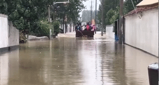 山东济南章丘区东皋西村发生严重内涝,部分区域水深2米左右。