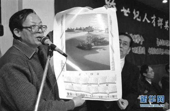 1994年1月,北大方正集团研制成功高档彩色出版系统,王选(左)在介绍这一科研成果。图片来源:新华网