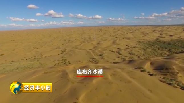 2019年8月初,《经济半小时》记者在库布齐沙漠发现,库布齐沙漠有三分之一的面积已经从荒漠变成绿洲。不仅如此,在沙漠腹地,一座占地五万亩的光伏电站格外显眼。