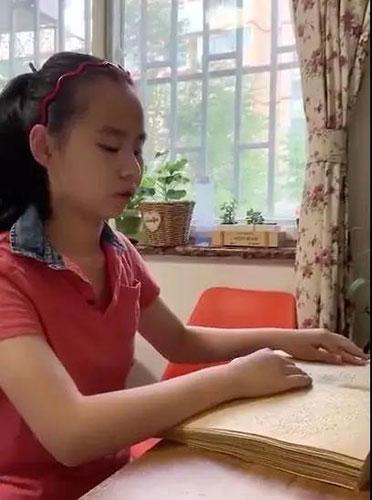 学习乐理知识,是小雅祺学习琵琶的另一大困难。别人用眼睛看书,小雅祺却需要用双手一个字一个字地在书面上“触摸”过去。