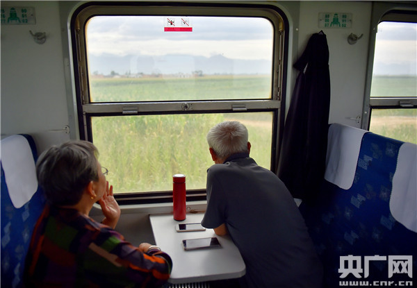 因为没有站台,彼时列车每到一个站点,他们都要在车厢门口放好木梯,遇夜晚,还得提着马灯照亮乘客脚下的路。“你看,车外环境变化更大。”转过身来,与洪静云同行的刘玉霞接话道,7524次运行的线路由于地处贺兰山与乌兰布和沙漠交界处,所以当年从大武口站开始,铁路两旁就布满了连绵的沙地。“风吹沙石跑,遍地不长草。这是我们当年形容沿途‘风光’的顺口溜。”刘玉霞说,当时是蒸汽机车,加上外面沙尘大,列车窗户常是黑的。经过隧道时,脸还会被烟气熏黑。