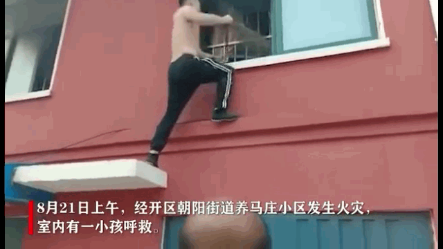 确定被困女孩所在房间后,张豪杰打量了一下那个窗口的位置,双手扒着车库顶上的门缝,在其他居民的托举下爬到窗户侧下方的空调室外机平台。