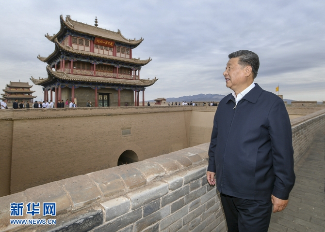 20日上午,习近平总书记来到嘉峪关关城,登上城楼察看关城整体面貌,听取河西走廊长城、关隘历史文化情况介绍。