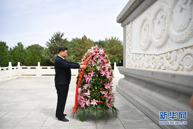 习近平来到张掖市高台县,瞻仰中国工农红军西路军纪念碑,向革命先烈敬献花篮。