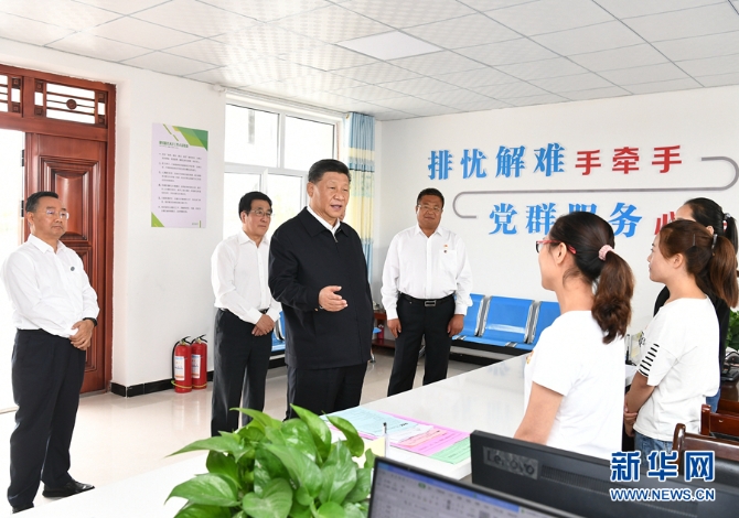 习近平在武威市古浪县黄花滩生态移民区富民新村党群服务中心考察。