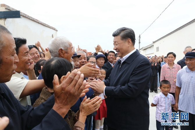 习近平在武威市古浪县黄花滩生态移民区富民新村同村民亲切交谈。