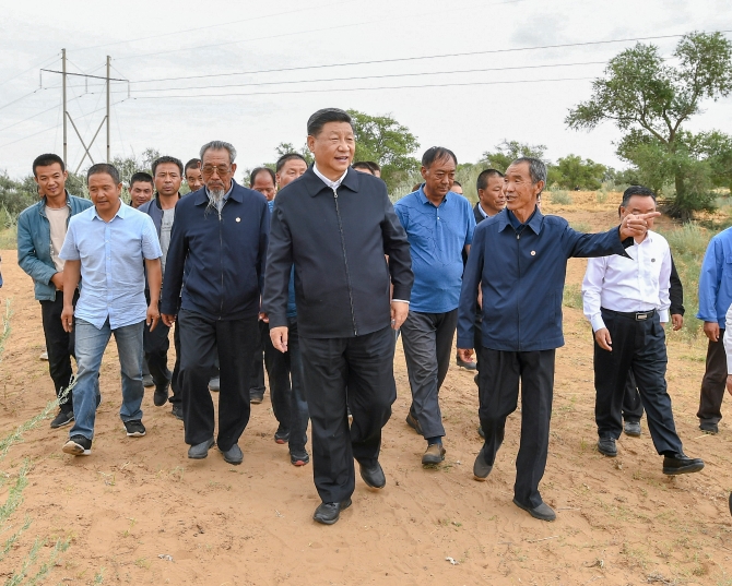 随后,习近平乘车前往八步沙林场。林场地处河西走廊东端、腾格里沙漠南缘。