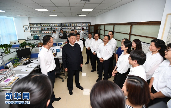习近平在《读者》编辑部同工作人员交流,勉励他们为人民提供更多优秀精神食粮。