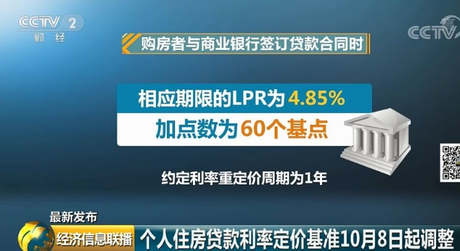 △央视财经《经济信息联播》栏目视频个人住房贷款利率定价基准10月8日起调整