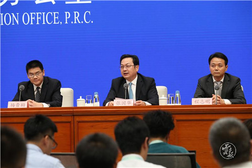 当天,商务部副部长王受文现场进行发布。副省长张国华参加发布会并回答记者提问。(云报客户端 记者韩成圆 周灿/摄)